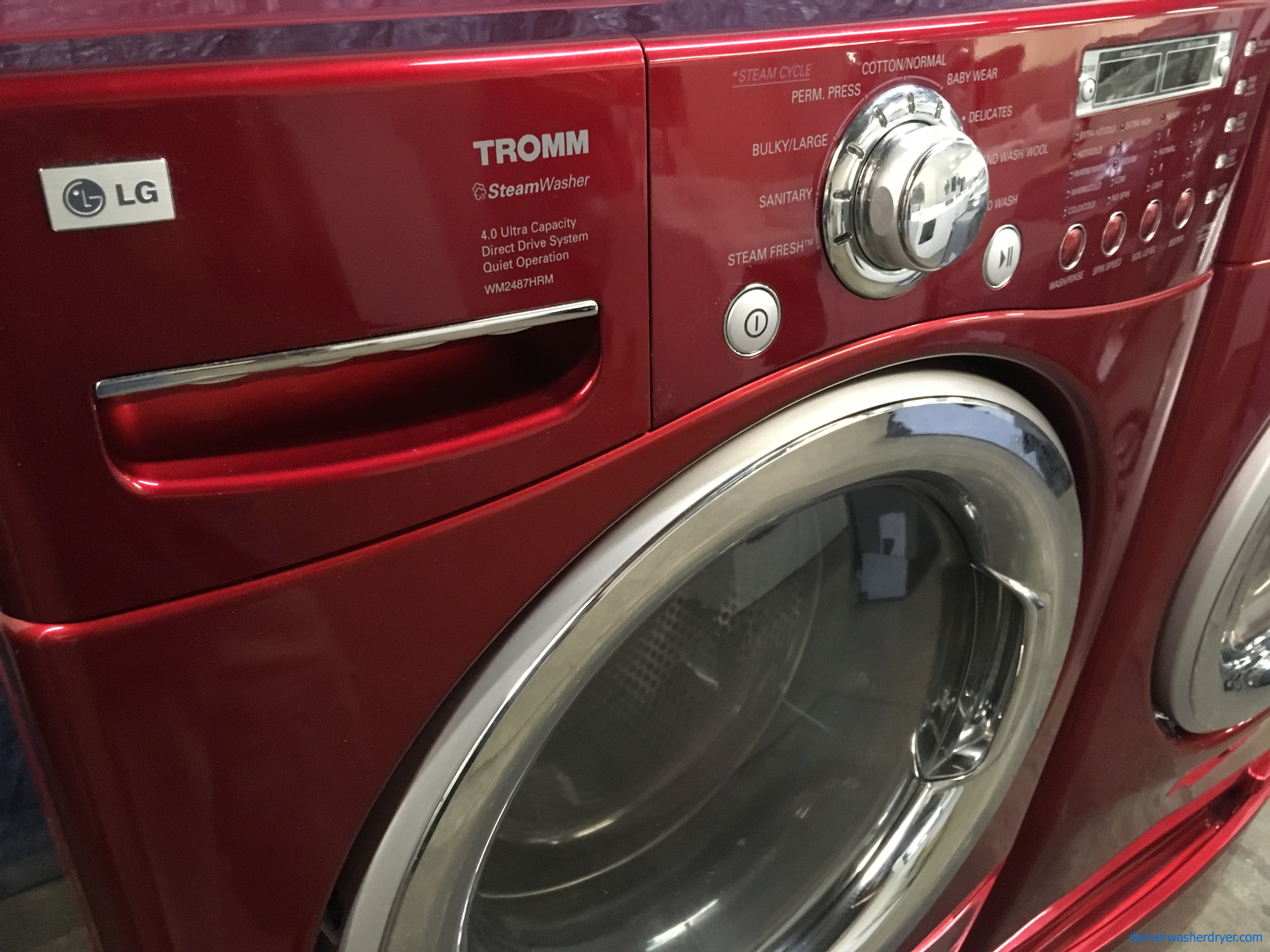 IMG-7272 Published June 13, 2018 at 4032 × 3024 in Quality Refurbished Wild-Cherry Colored 27″ LG Stackable Front-Load Direct-Drive HE Steam-Washer & Electric Steam-Dryer w/Pedestals, 1-Year Warranty